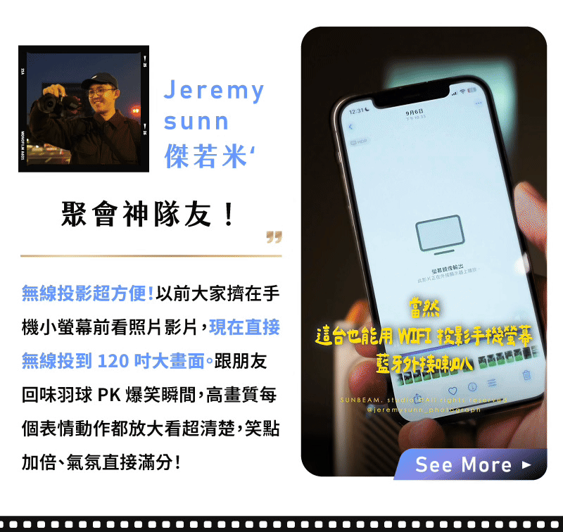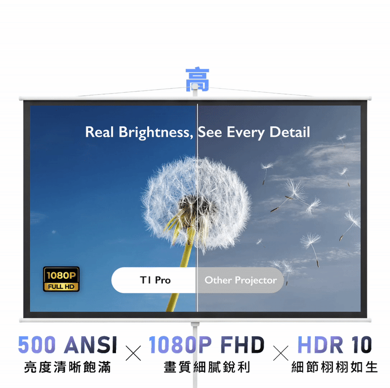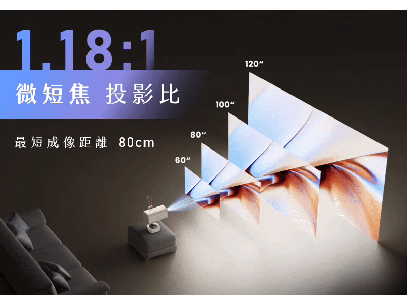 ●微短焦: 只需要80公分的距離 就可以投射了