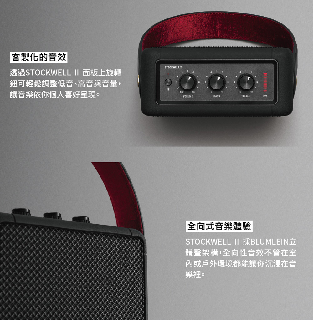 • 旋轉鈕輕鬆調整低 / 高音、音量