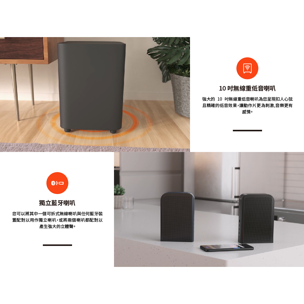 ◆ 藍牙版本:主條形音箱 - 5.0,可拆式環繞喇叭 - 5.2